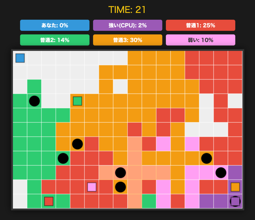 スプラトゥーンに影響された陣取り塗りゲーム。CPUの敵が多くて賑やか。
